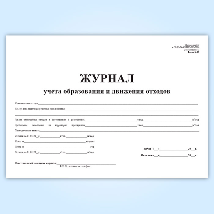 Журнал учета образования и движения отходов в Магнитогорске купить