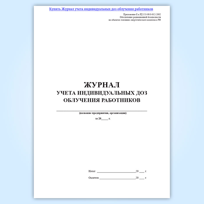 Журнал учета индивидуальных доз облучения работников в Магнитогорске купить