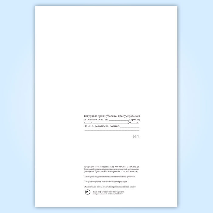 Вы получаете печатную продукцию прошнурованной и c местом для вашей печати в соответствии с действующими нормативными документами: