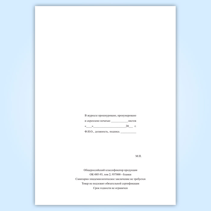 Вы получаете печатную продукцию прошнурованной и c местом для вашей печати в соответствии с действующими нормативными документами: