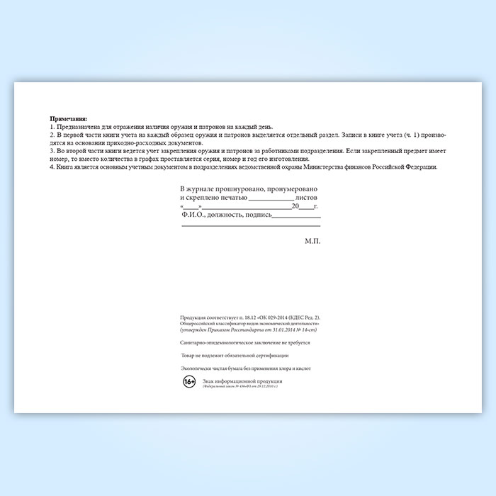 Книга учета и персонального закрепления оружия и патронов в Магнитогорске купить