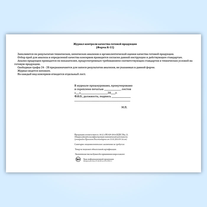 Журнал контроля качества готовой продукции (форма К-11) в Магнитогорске купить