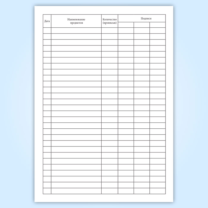 Вы получаете печатную продукцию прошнурованной и c местом для вашей печати в соответствии с действующими нормативными документами: