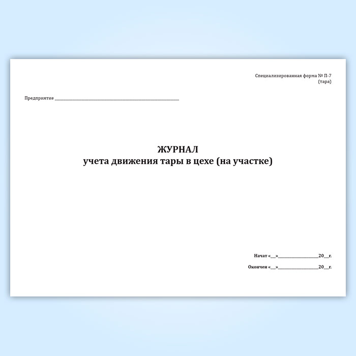 Журнал учета движения тары в цехе (форма П-7 тара) в Магнитогорске купить