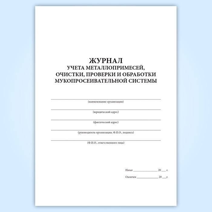 Журнал учета металлопримесей, очистки, проверки и обработки мукопросеивательной системы в Магнитогорске купить