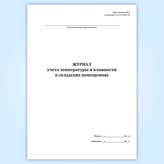 Журнал учета температуры и влажности в складских помещениях (СанПиН 2.3/2.4.3590-20) в Магнитогорске купить