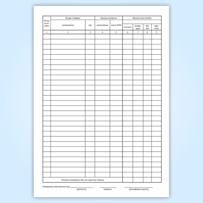 Журнал учета столовой посуды и приборов, выдаваемых подотчет сотрудникам предприятия (специализированная форма 16-ОПит) в Магнитогорске купить