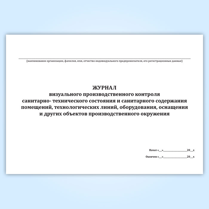 Журнал визуального производственного контроля санитарно-технического состояния и санитарного содержания помещений, технологических линий, оборудования, оснащения и других объектов производственного окружения в Магнитогорске купить