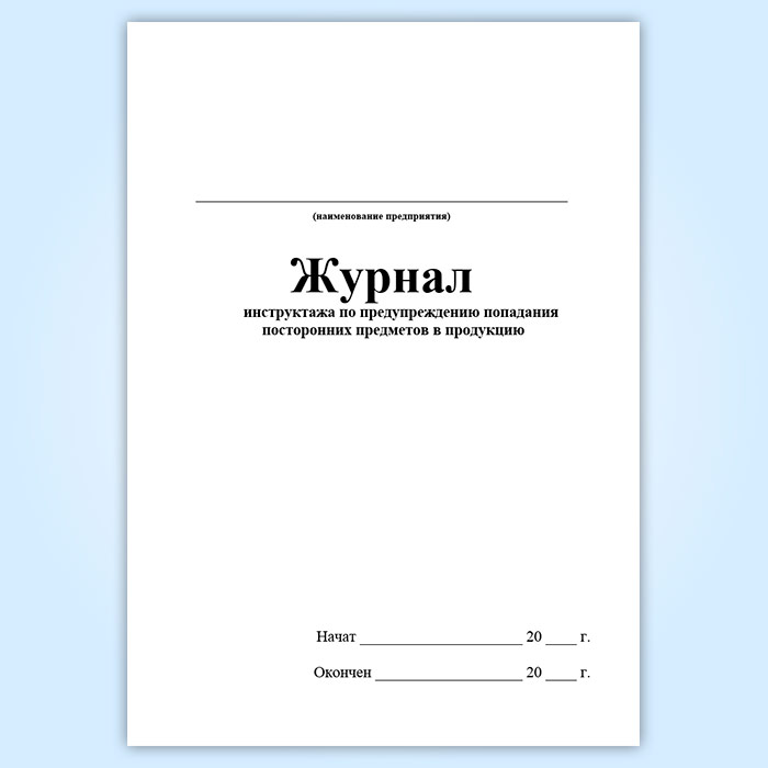 Журнал инструктажа по предупреждению попадания посторонних предметов в продукцию в Магнитогорске купить