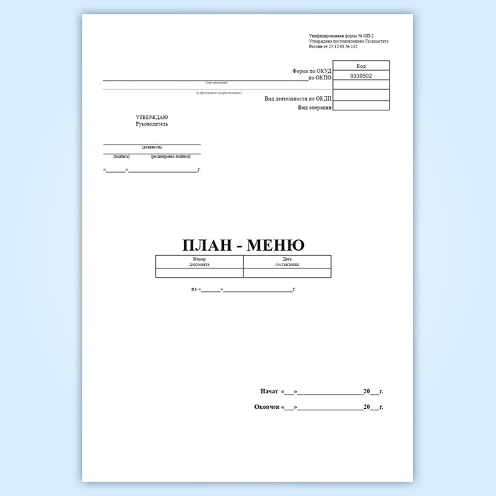 Журнал План-меню (форма ОП-2) в Магнитогорске купить