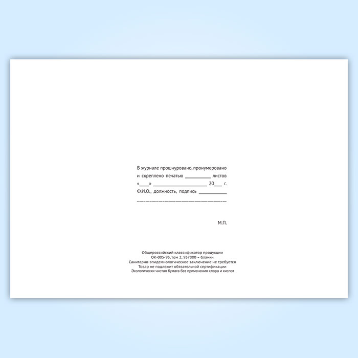 Вы получаете печатную продукцию прошнурованной и c местом для вашей печати в соответствии с действующими нормативными документами: