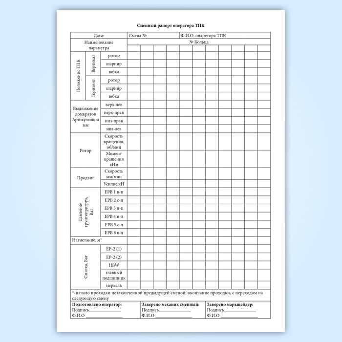 Журнал сменных рапортов операторов тоннелепроходческого комплекса в Магнитогорске купить