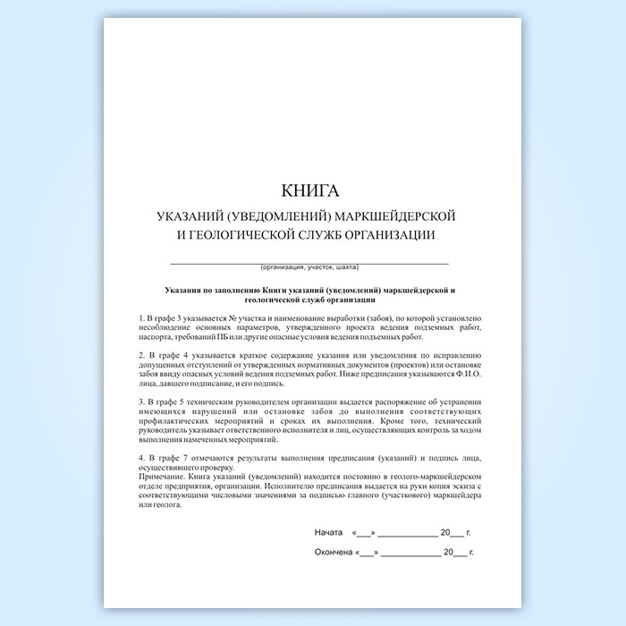 Книга указаний (уведомлений) маркшейдерской и геологической служб организации в Магнитогорске купить