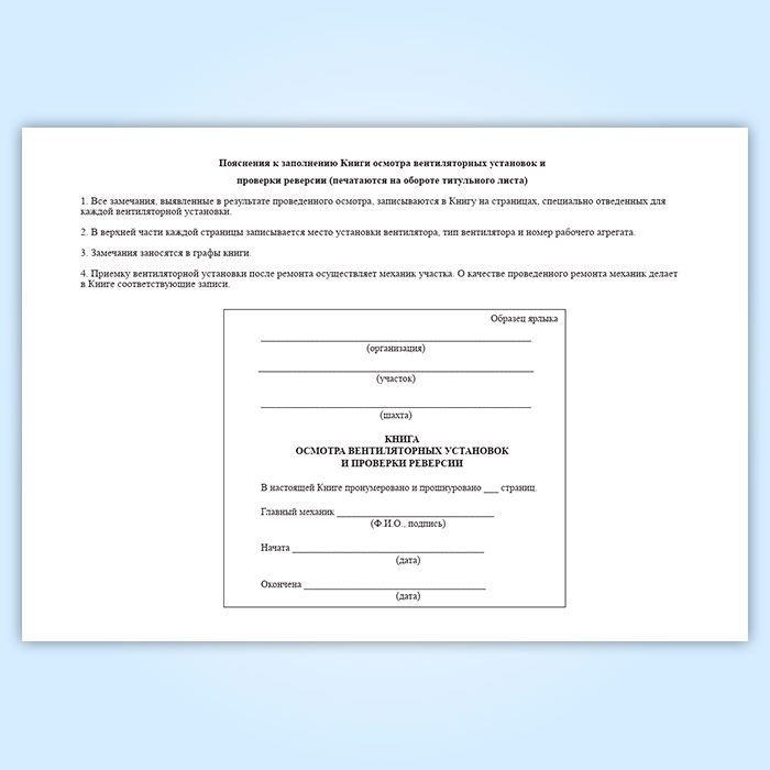Книга осмотра вентиляторных установок и проверки реверсии в Магнитогорске купить