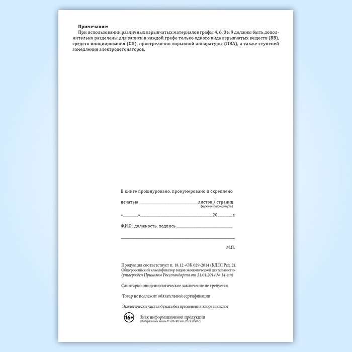 Книга учета выдачи и возврата взрывчатых материалов в Магнитогорске купить