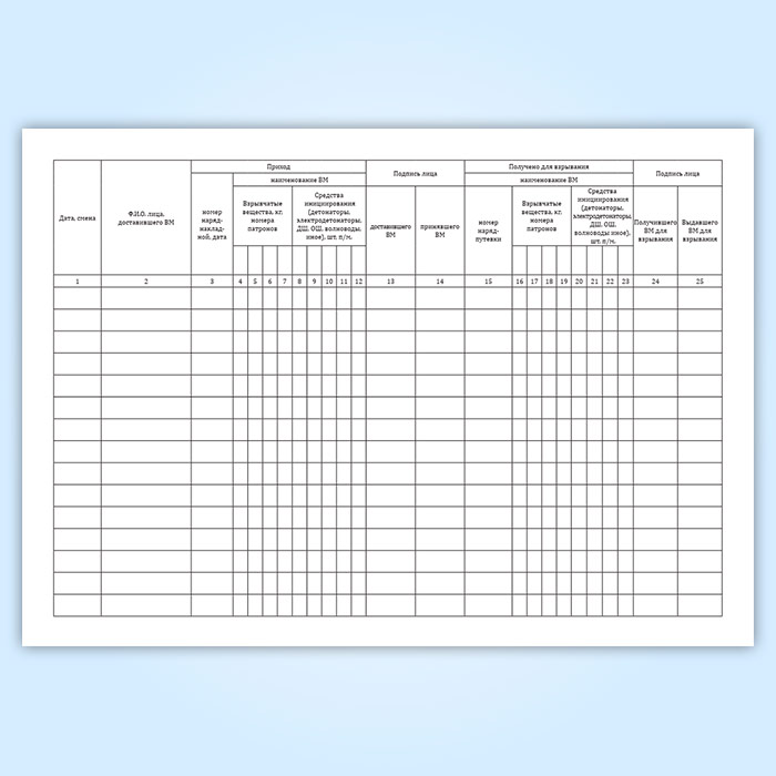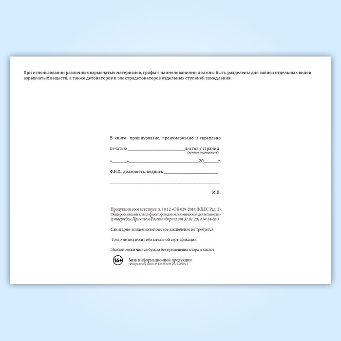 Книга учета прихода и расхода взрывчатых материалов участкового пункта хранения ВМ в Магнитогорске купить