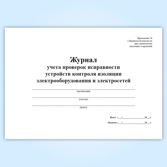Журнал учета проверок исправности устройств контроля изоляции электрооборудования и электросетей в Магнитогорске купить