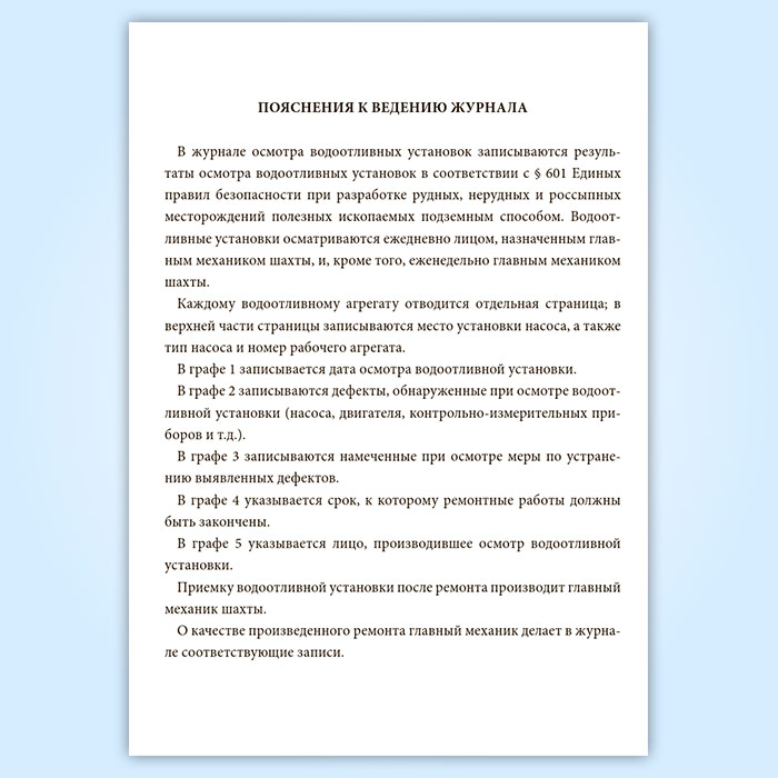 Журнал осмотра водоотливных установок в Магнитогорске купить