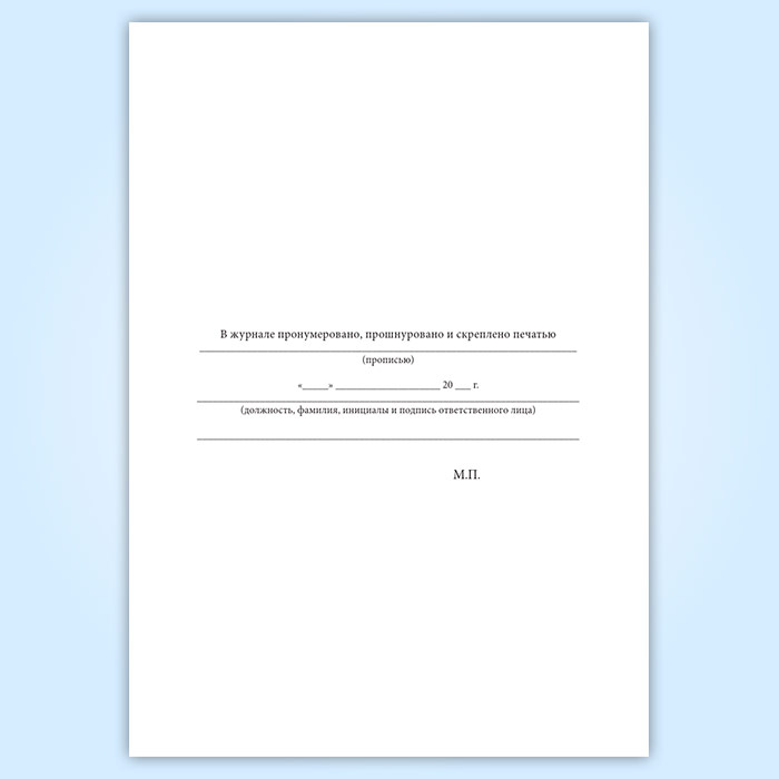Вы получаете печатную продукцию прошнурованной и c местом для вашей печати в соответствии с действующими нормативными документами: