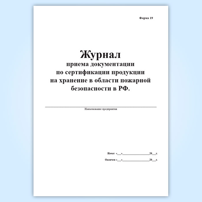 Журнал приема документации по сертификации продукции на хранение в области пожарной безопасности в РФ (форма 19) в Магнитогорске купить