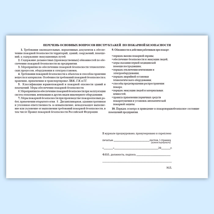 Журнал регистрации инструктажей по пожарной безопасности в Магнитогорске купить