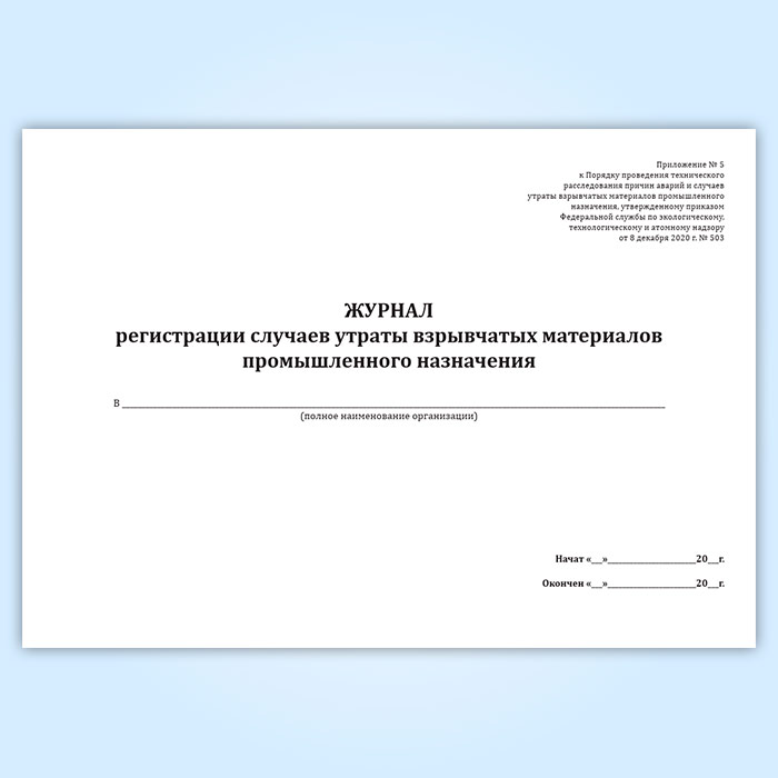 Журнал регистрации случаев утраты взрывчатых материалов промышленного назначения в Магнитогорске купить