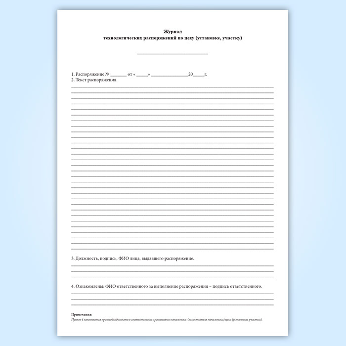 Журнал технологических распоряжений по цеху (установке, участку) в Магнитогорске купить
