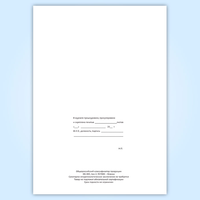 Вы получаете печатную продукцию прошнурованной и c местом для вашей печати в соответствии с действующими нормативными документами: