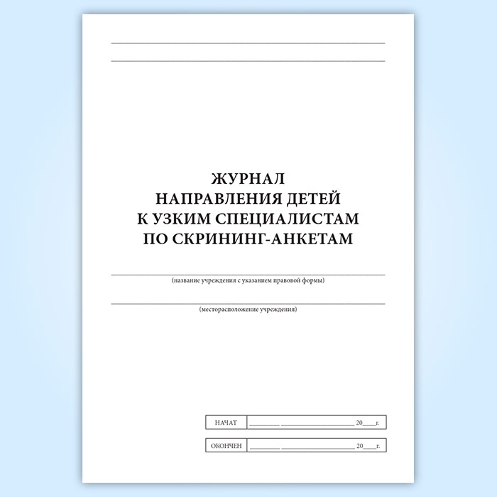 Журнал направления детей к узким специалистам по скрининг-анкетам в Магнитогорске купить