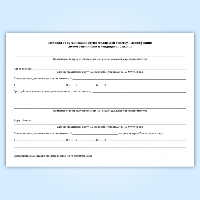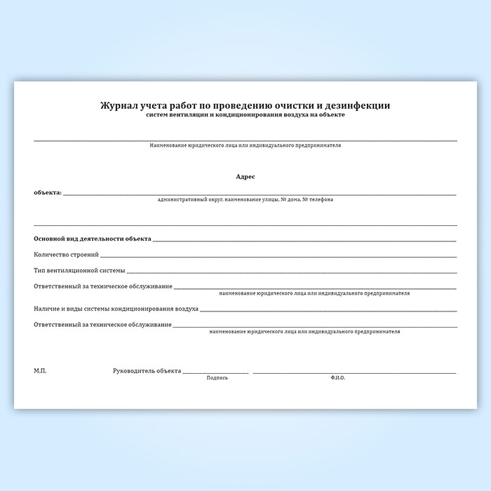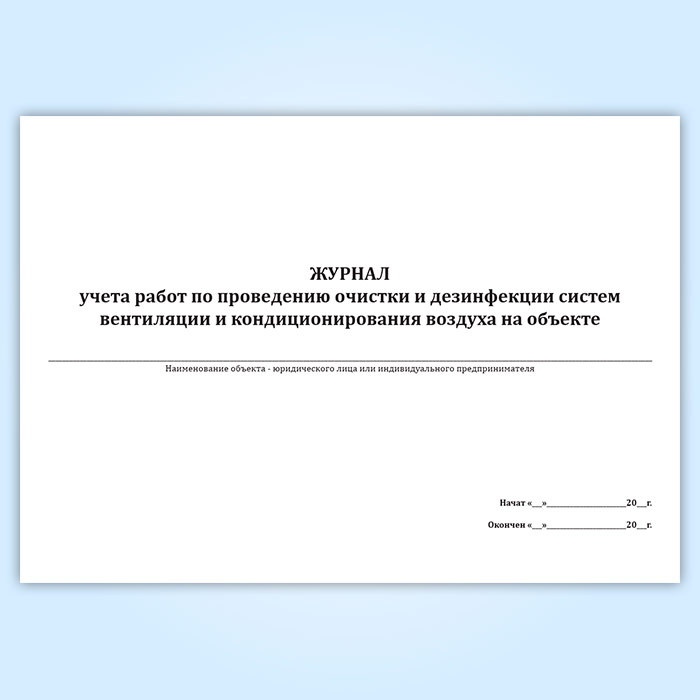 Журнал учета работ по проведению очистки и дезинфекции систем вентиляции и кондиционирования воздуха на объекте в Магнитогорске купить