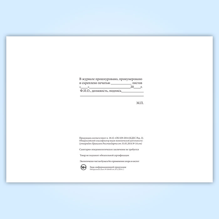 Вы получаете печатную продукцию прошнурованной и c местом для вашей печати в соответствии с действующими нормативными документами: