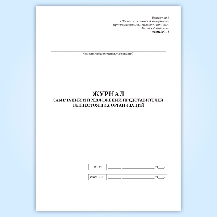 Журнал замечаний и предложений представителей вышестоящих организаций (форма ПС-13) в Магнитогорске купить