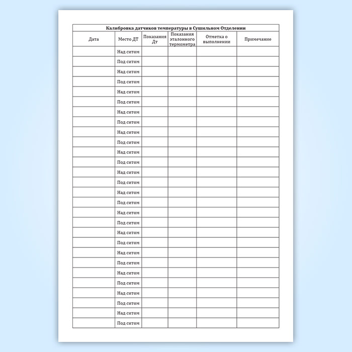 Журнал калибровки датчиков температуры в сушильном отделении в Магнитогорске купить