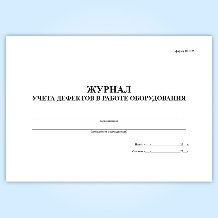 Журнал учета дефектов в работе оборудования (форма ЗПС-75) в Магнитогорске купить