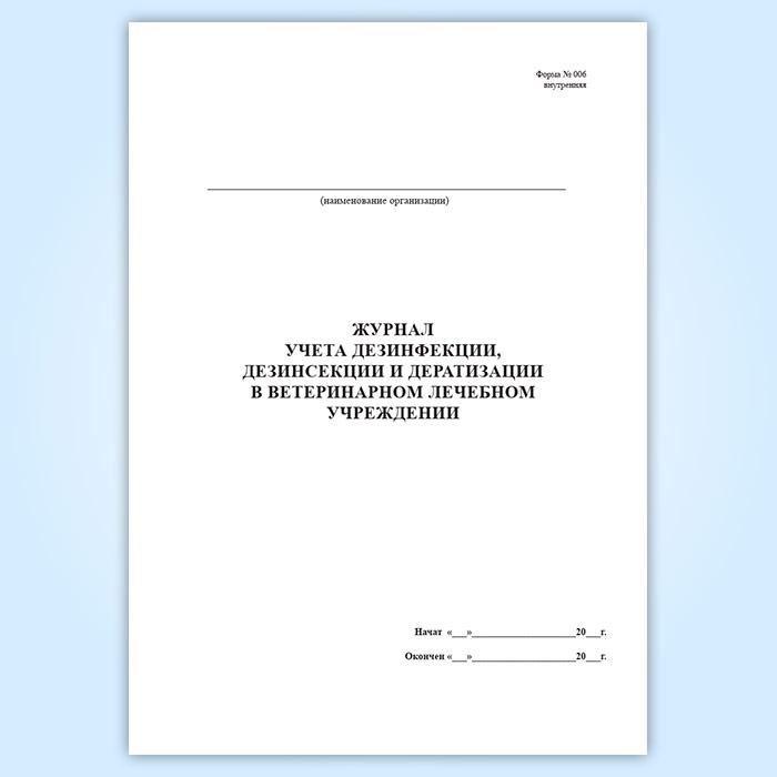Журнал учета дезинфекции ветеринарного лечебного подразделения (форма № 006 вн.) в Магнитогорске купить