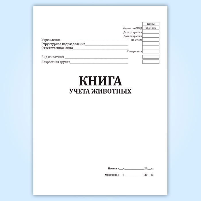 Книга учета животных (форма 0504039) в Магнитогорске купить