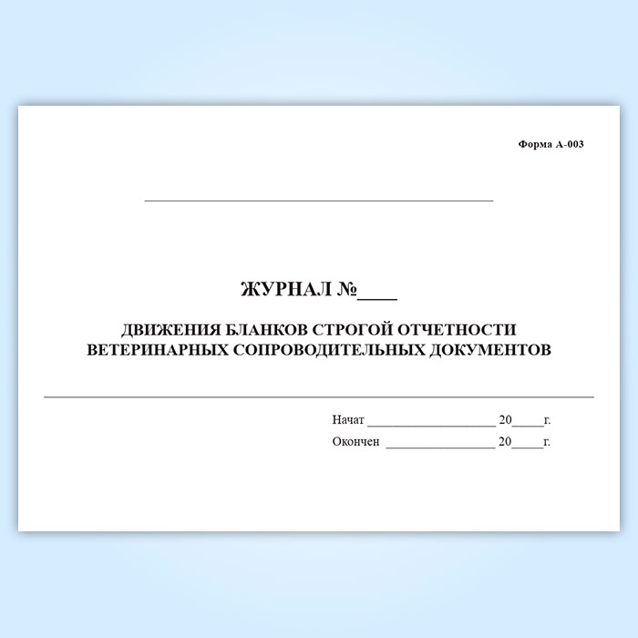 Журнал движения бланков строгой отчетности ветеринарных сопроводительных документов (форма А-003) в Магнитогорске купить