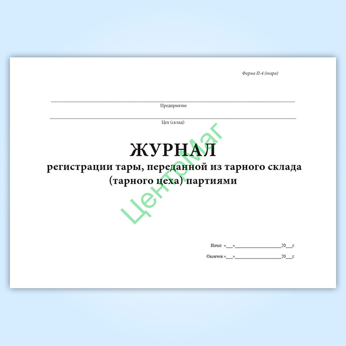 Журнал регистрации тары, переданной из тарного склада (тарного цеха) партиями (форма № П-4 тара) в Магнитогорске купить