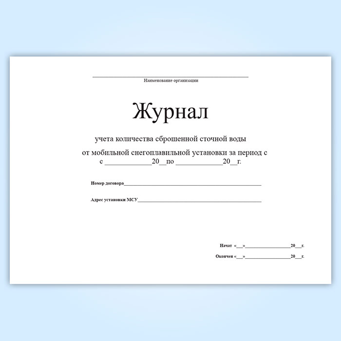 Журнал учета количества сброшенной сточной воды от мобильной снегоплавильной установки в Магнитогорске купить