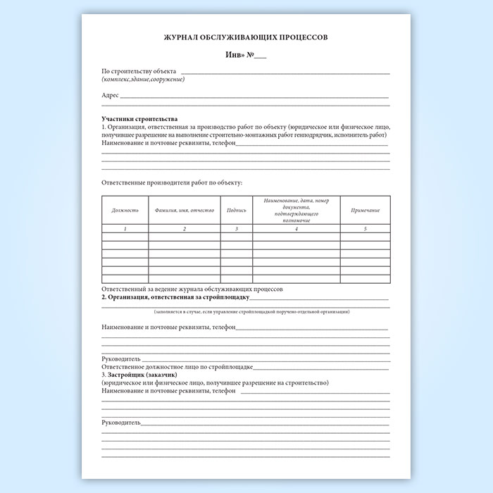 Журнал обслуживающих процессов по объекту в Магнитогорске купить