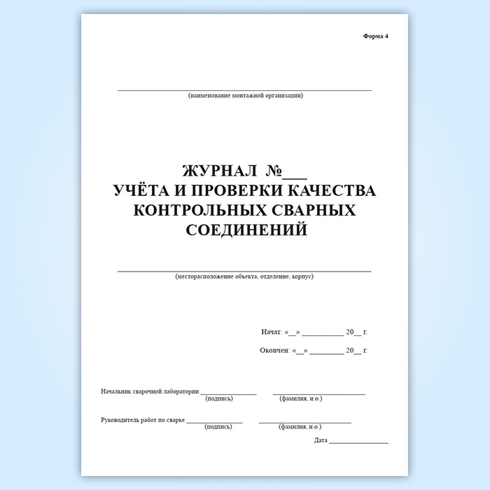 Журнал учета и проверки качества контрольных сварных соединений (форма 4) в Магнитогорске купить