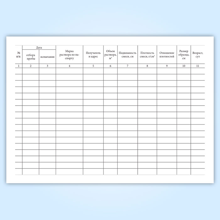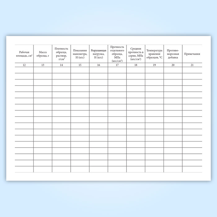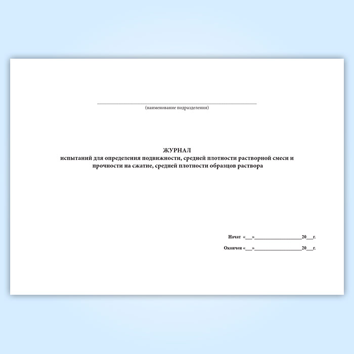 Журнал испытаний для определения подвижности, средней плотности растворной смеси и прочности на сжатие, средней плотности образцов раствора в Магнитогорске купить