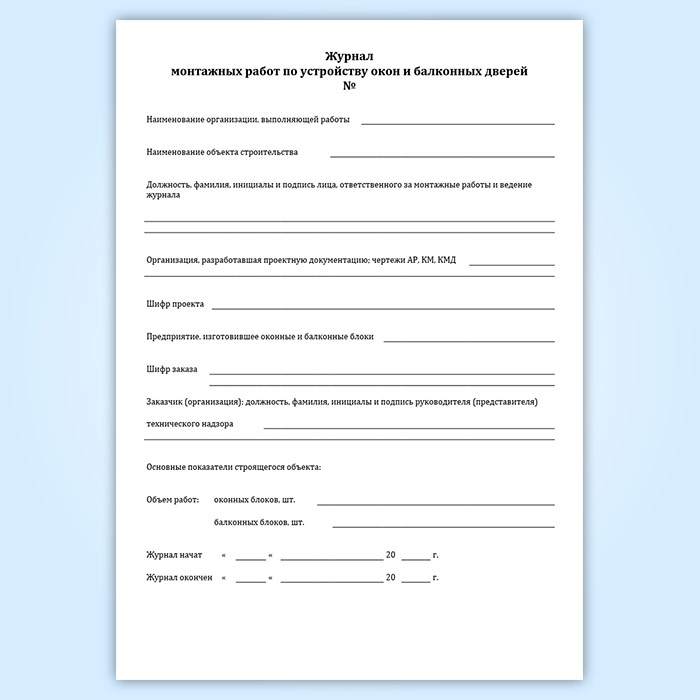 Журнал монтажных работ по устройству окон и балконных дверей в Магнитогорске купить