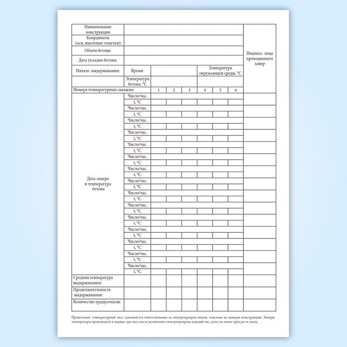Журнал регистрации температуры бетона в монолитных конструкциях в Магнитогорске купить