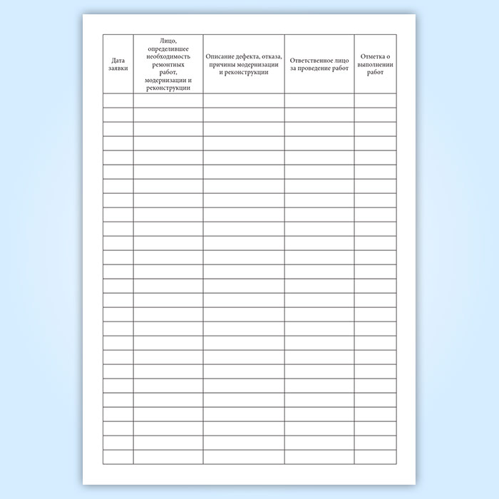 Журнал заявок на проведение ремонтных работ, работ по модернизации, реконструкции в Магнитогорске купить
