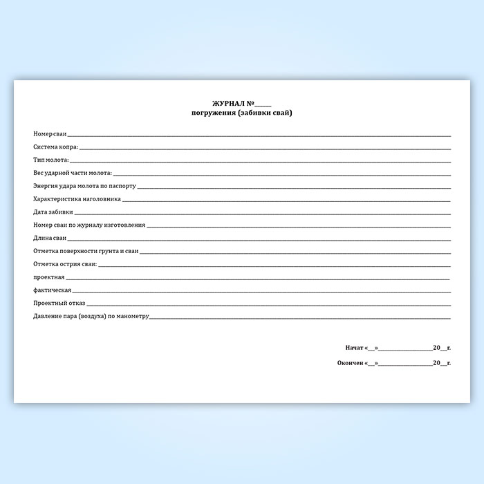 Журнал погружения (забивки свай) (форма 4.1) в Магнитогорске купить