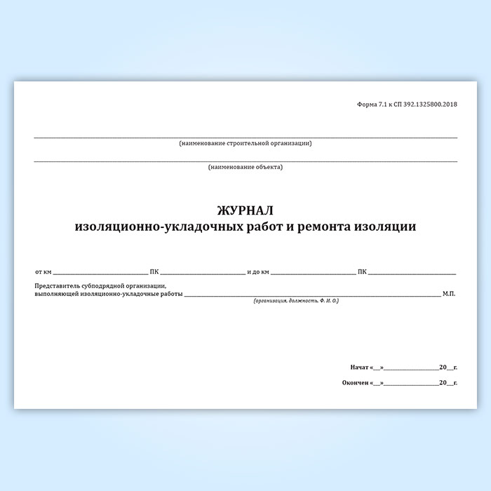 Журнал изоляционно-укладочных работ и ремонта изоляции (форма 7.1) в Магнитогорске купить