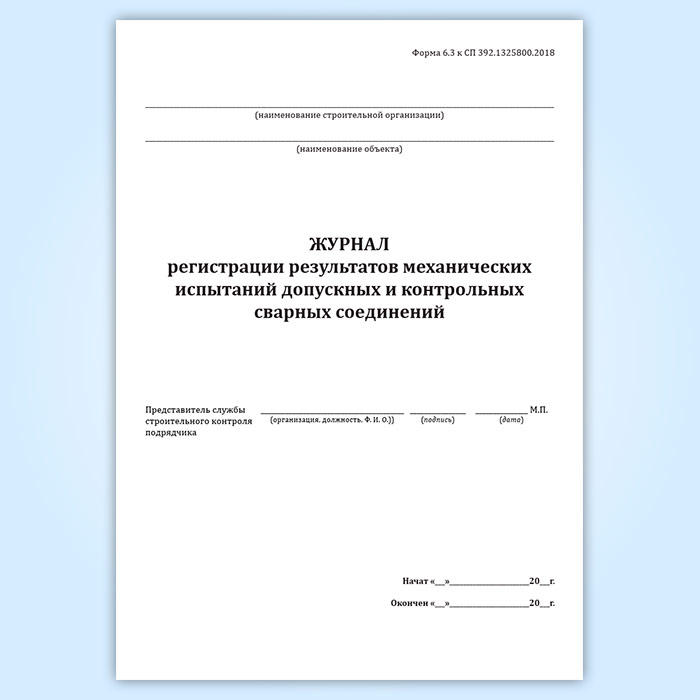 Журнал регистрации результатов механических испытаний допускных и контрольных сварных соединений (форма 6.3) в Магнитогорске купить