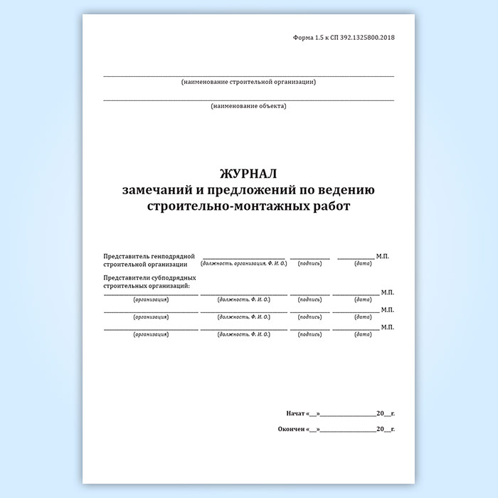 Журнал замечаний и предложений по ведению строительно-монтажных работ (форма 1.5, СП 392.1325800.2018) в Магнитогорске купить