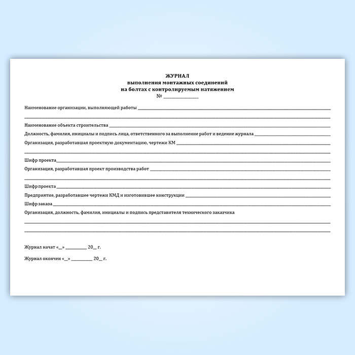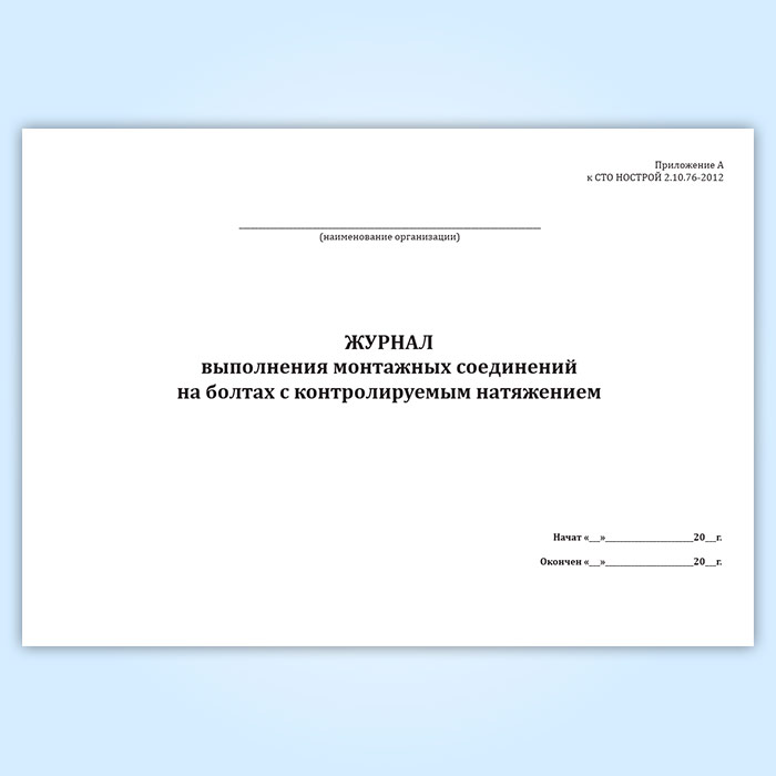 Журнал выполнения монтажных соединений на болтах с контролируемым натяжением (СТО НОСТРОЙ 2.10.76-2012) в Магнитогорске купить
